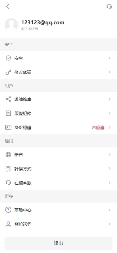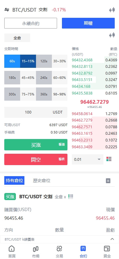 系统功能:币币交易、永续合约、期权交易、闪兑、理财、借币、邀请等功能