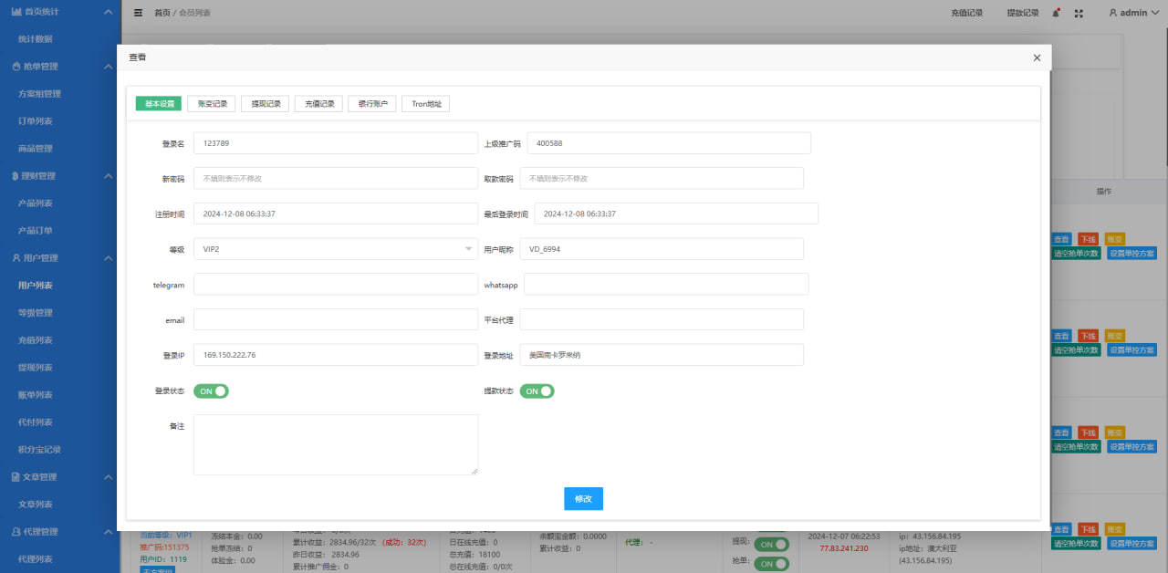 隐藏内容 本内容需权限查看 购买查看权限 普通用户: 2000USDTVIP会员: 1000USDT5折永久会员: 免费 已有1人解锁查看 系统后端功能全新定制,后端新增多个功能 前端VUE开发,后端php开发全开源 声明:本站所有文章,如无特殊说明或标注。任何个人或组织,在未征得本站同意时,禁止复制、盗用、采集、发布本站内容到任何网站,如有任何问题可联系我们进行处理 TG@laike99