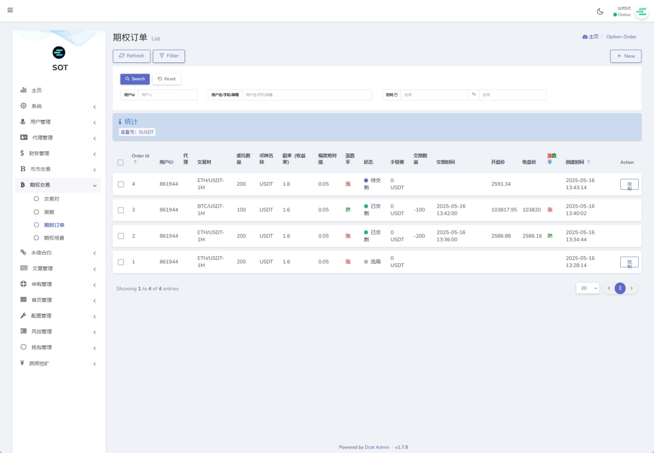 4、币种管理(币种的添加设置、提币账户管理、是否显示、交易对管理)