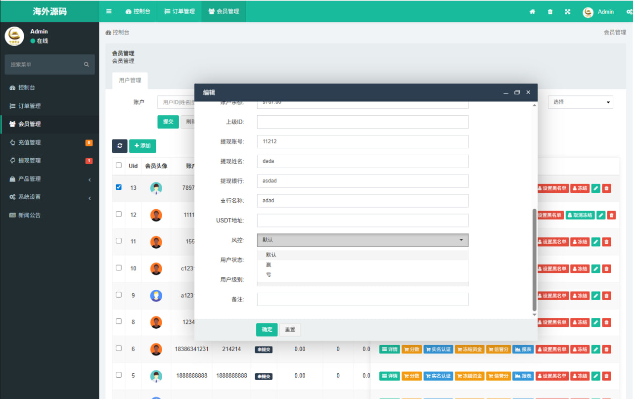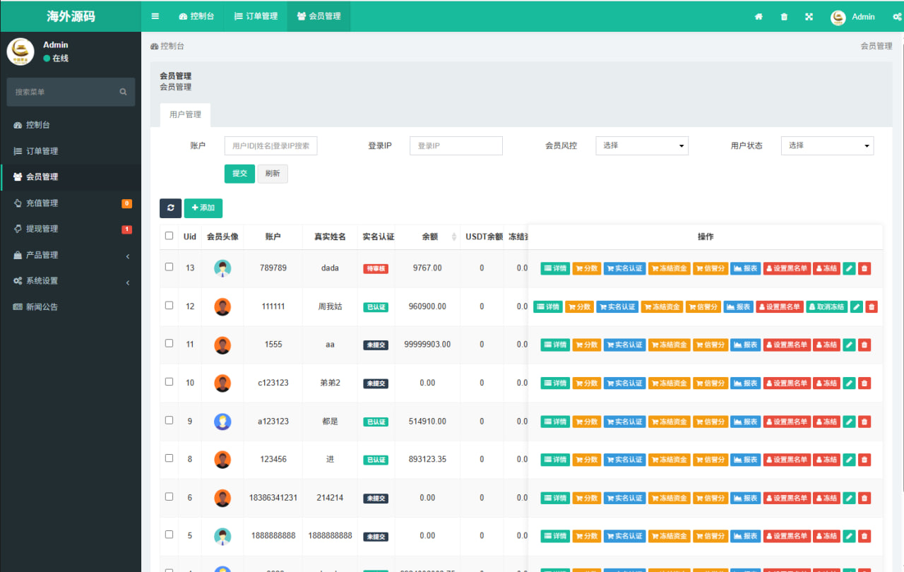 系统产品可二开其他产品,支持实名认证、信用分、单控等功能
