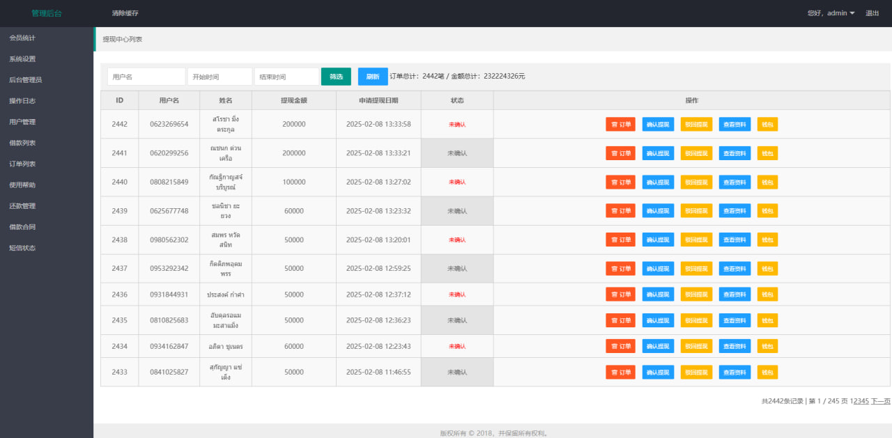 隐藏内容 本内容需权限查看 购买查看权限 普通用户: 800USDTVIP会员: 免费永久会员: 免费 已有5人解锁查看 二开版泰国小额贷款系统,系统正常运营 前端单泰语,支持二开其他语言 声明:本站所有文章,如无特殊说明或标注。任何个人或组织,在未征得本站同意时,禁止复制、盗用、采集、发布本站内容到任何网站,如有任何问题可联系我们进行处理 TG@laike99